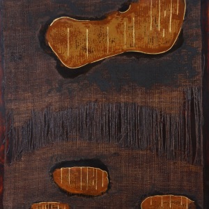 CHINESE LACQUER ON WOOD BOARD, RAMIE FABRIC, GOLD LEAF