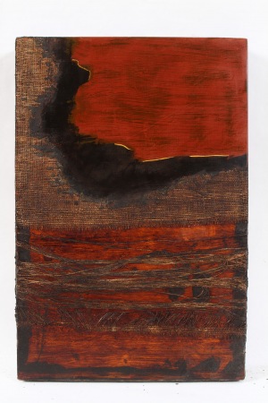 CHINESE LACQUER ON WOOD, RAMIE FABRIC, GOLD POWDER