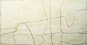 OIL, ASPHALT, BURLAP, MARBLE DUST GRAPHITE ON CANVAS